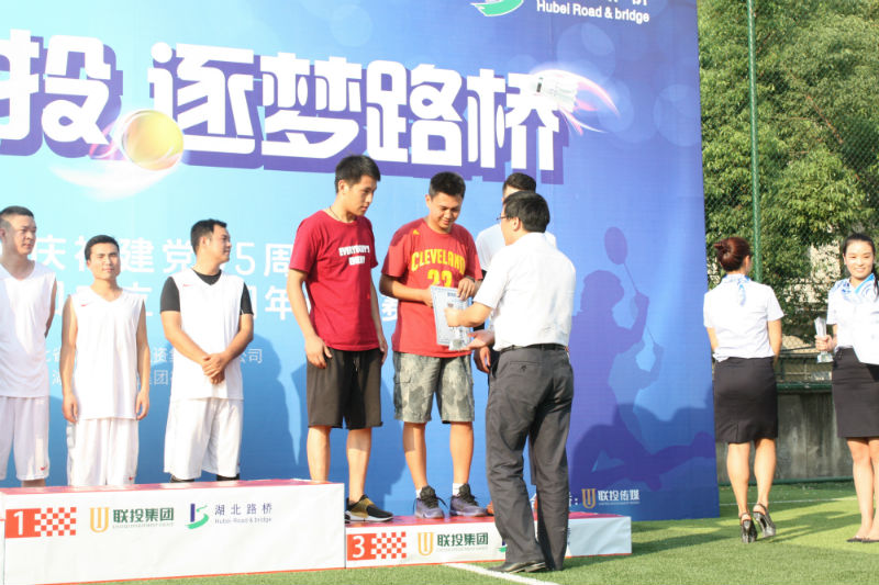 金秋九月彩旗飘扬,运动赛场青春激荡!两天的角逐,美好而短暂,为每一个联投人留下了"运动、健康、快乐"的美好回忆。9月11日下午4点半,伴随着明媚阳光,联投集团第一届 "激情联投 逐梦路桥"球类邀请赛闭幕式在路桥集团足球场举行,为本次邀请赛画上了圆满句号。联投集团综合办公室主任、工会副主席项益明,联投集团建管部部长高俊普、副部长付汉江,联投集团综合办公室副主任王进力等领导出席此次闭幕式并为获奖集体颁奖,路桥集团工会主席马建刚主持了闭幕式。