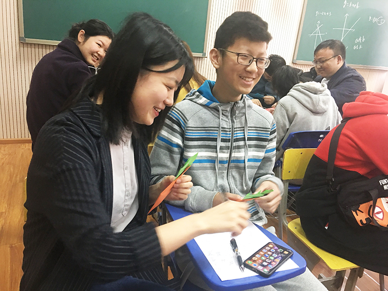 志愿者与同学们一对一结伴并通过纸笔相互交流,手把手教这些孩子们做折纸,青蛙、兔子、胡萝卜、大象、扬帆远航号……这些可爱的折纸作品唯妙唯俏;“你演我猜”游戏更是将欢乐的氛围推向了高潮,在聋生们的生动演绎和志愿者们的默契配合下,高手层出不穷,全程笑点不断。