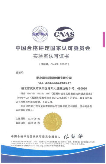 (图:瑞达公司获得国家实验室认可证书)