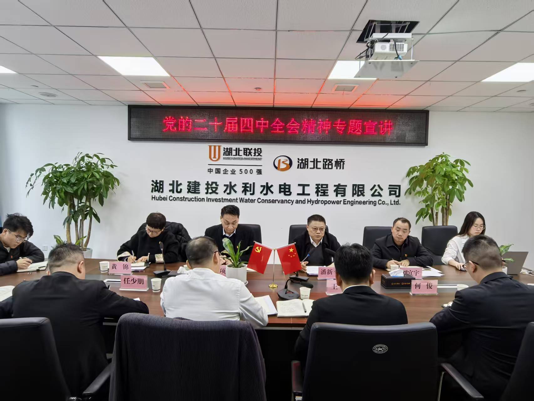 12月30日,湖北路桥党委书记、董事长潘新平赴水利公司讲授学习贯彻党的二十届四中全会精神专题党课并开展工作调研,党建工作部(党委办公室、董事会办公室)、财务管理部(资金中心)、科学技术质量部(数字信息中心)负责人一同参加。
