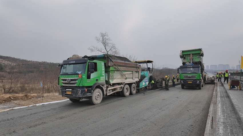 1月21日,在联投湖北路桥京港澳改扩建1标项目水稳摊铺现场,只见大型摊铺机缓缓前行,将水泥稳定碎石均匀铺设在已准备好的路基上。压路机紧随其后,对铺设好的路面进行压实作业,确保水稳层的密实度和平整度达到最佳状态。工人们各司其职,有的在检查材料质量,有的在调整机械参数,整个施工现场井然有序,展现出了高超的专业技能和团队协作精神。“争取春节放假前把所有水稳摊铺工作面全部完成,为节后复工打基础,为冲刺2025年“四改八”通车奠定基础。”该现场技术负责人王伟说。