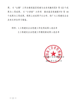 5月16日,中国施工企业管理协会公布了2024年“工程建设企业党建工作优秀成果”的名单,湖北路桥京港澳改扩建工程1标项目成功获评“工程建设企业党建工作优秀二等成果”。