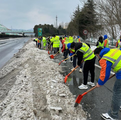 在抗冰除雪期间,项目全体员工除雪铲冰、应急救援,全力拼抢畅通时间,累计投入融雪剂110余吨,各类除雪设备55台次,出动300余人次,为高速畅通和行车安全保驾护航,只为不负自己的事业,不负国企的使命与担当。