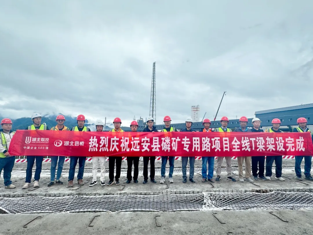 9月19日,由湖北路桥承建的远安县嫘祖至广坪段磷矿运输专用公路项目(以下简称远安县磷矿专用路项目)全线115片T梁全部架设完成,为项目按期通车奠定了坚实基础。
