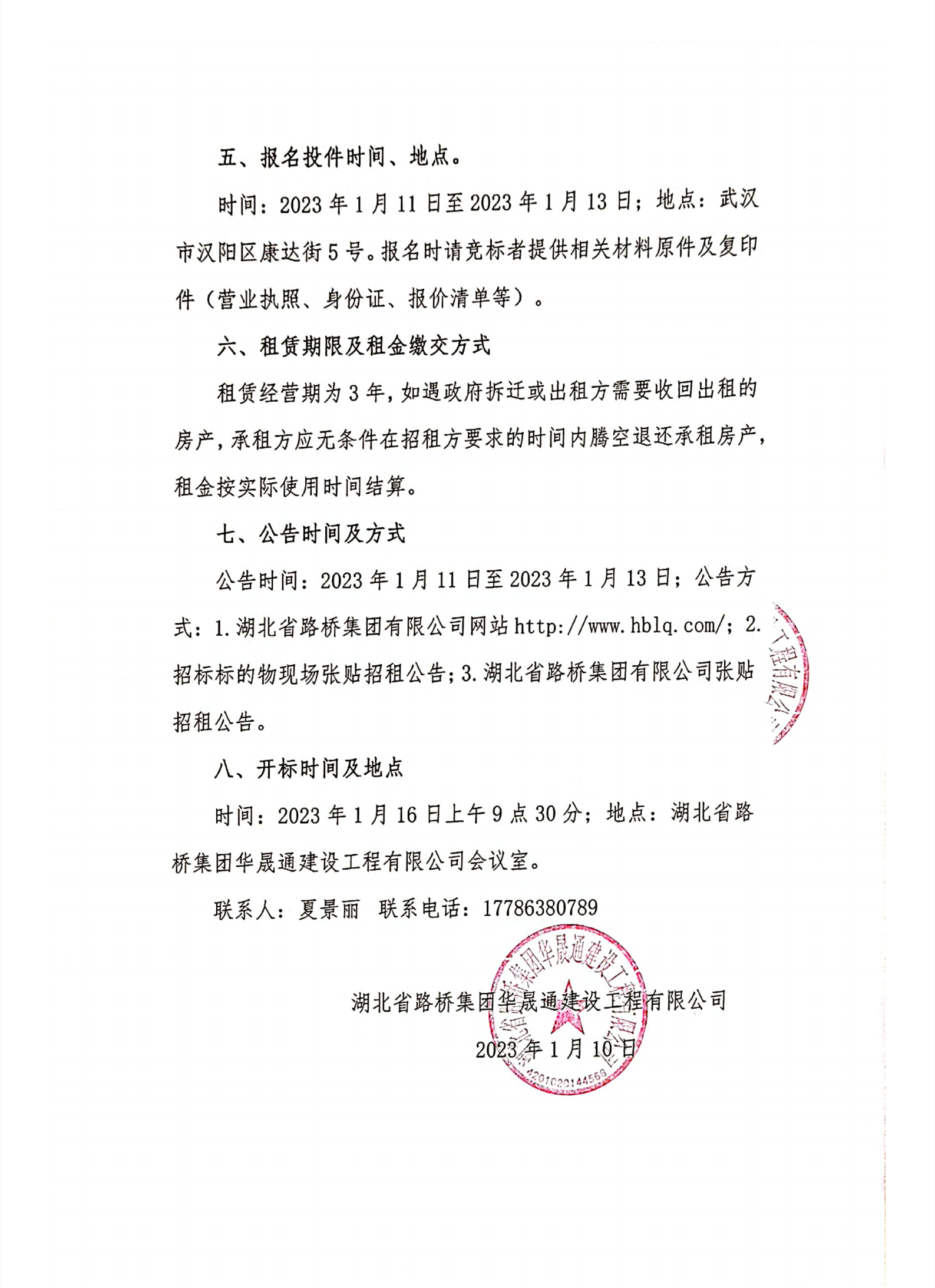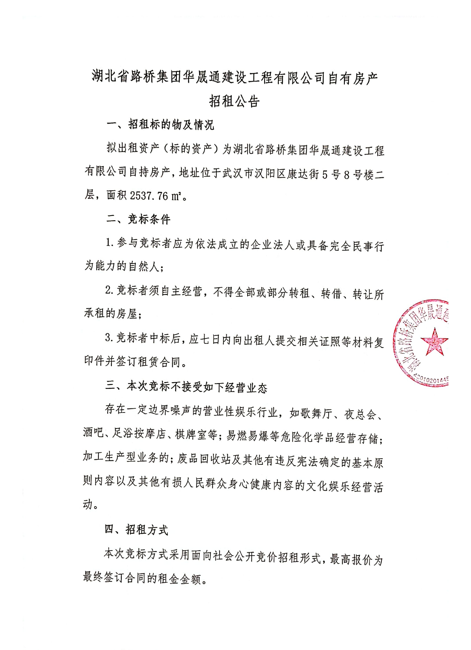 湖北省路桥集团华晟通建设工程有限公司自有房产招租公告